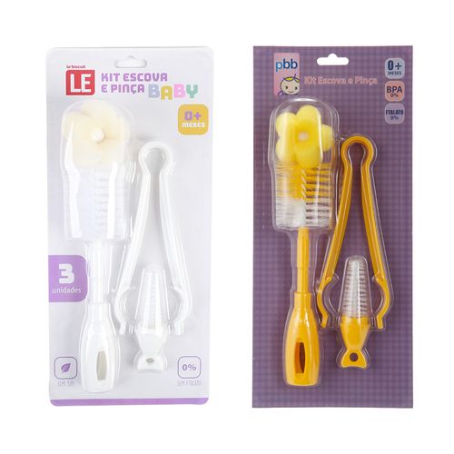 Conjunto Escova e Pinça Pbb para Mamadeira com 3 Peças Estampas Diversas - Item Sortido