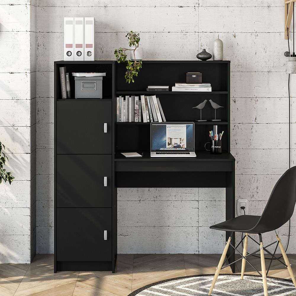 Escrivaninha com Estante Teresina 1 Porta 6 Prateleiras MDP Pintura UV Porta-CPU Politorno Preto