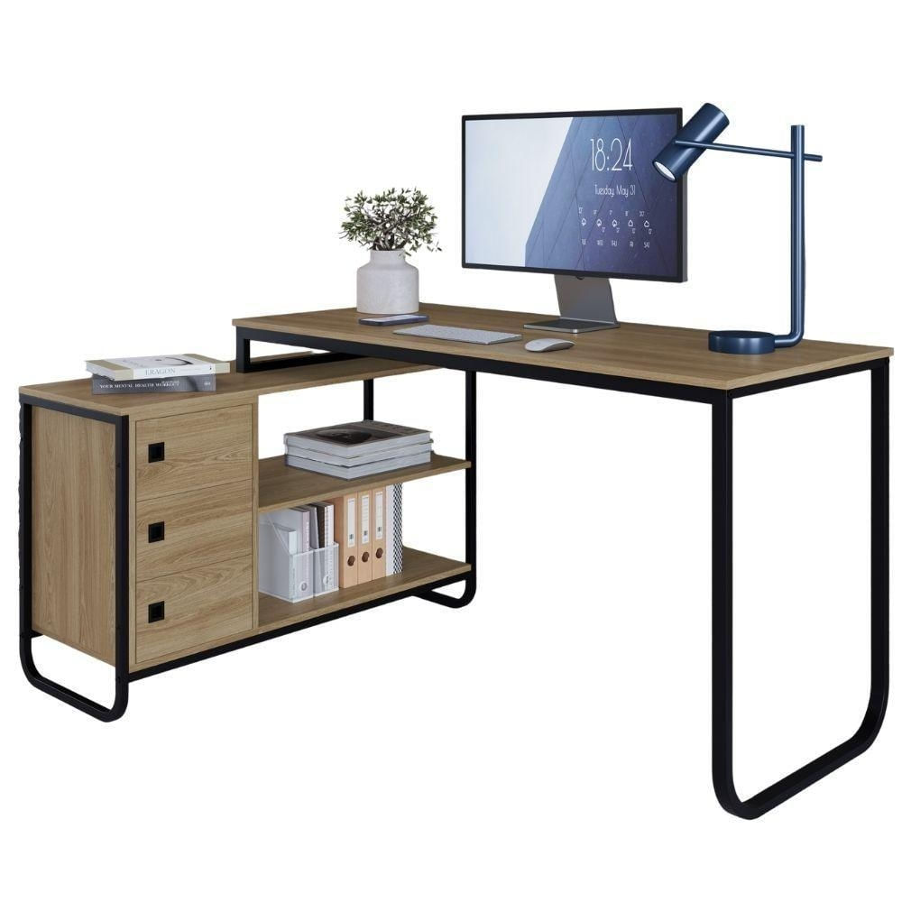 Escrivaninha De Canto 3 Gavetas P1063 Oak Preto Pp Milani Store