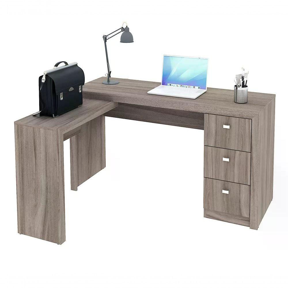Produto: Escrivaninha De Canto Reversível | Cômodo Indicado: Escritório | Tonalidade: Multicolorido Cor: Carvalho