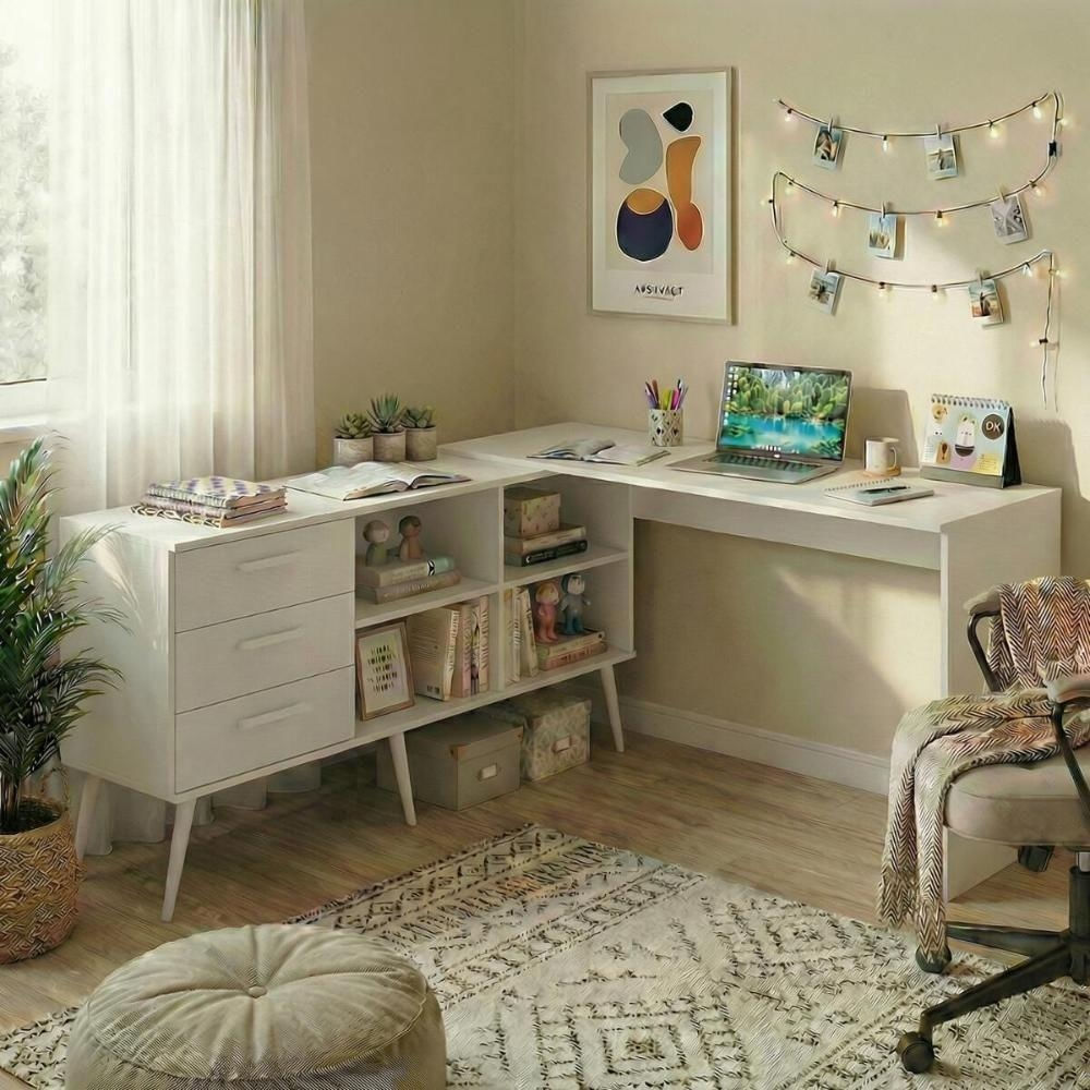 Escrivaninha De Estudos Em L Com 3 Gavetas Porto Multimóveis Mp6045 Branco