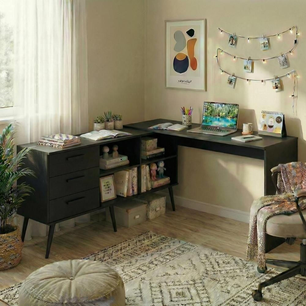 Escrivaninha De Estudos Em L Com 3 Gavetas Porto Multimóveis Mp6045 Preto