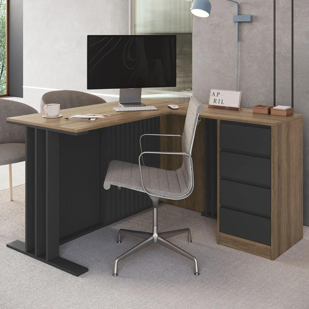 Escrivaninha Em L 120cm 4 Gavetas Rael Mel/grafite F10 - Mpozenato