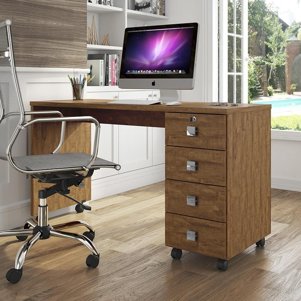 Escrivaninha Para Computador Office Dubai - Mdp 4 Gavetas Amêndoa - Lukaliam Móveis