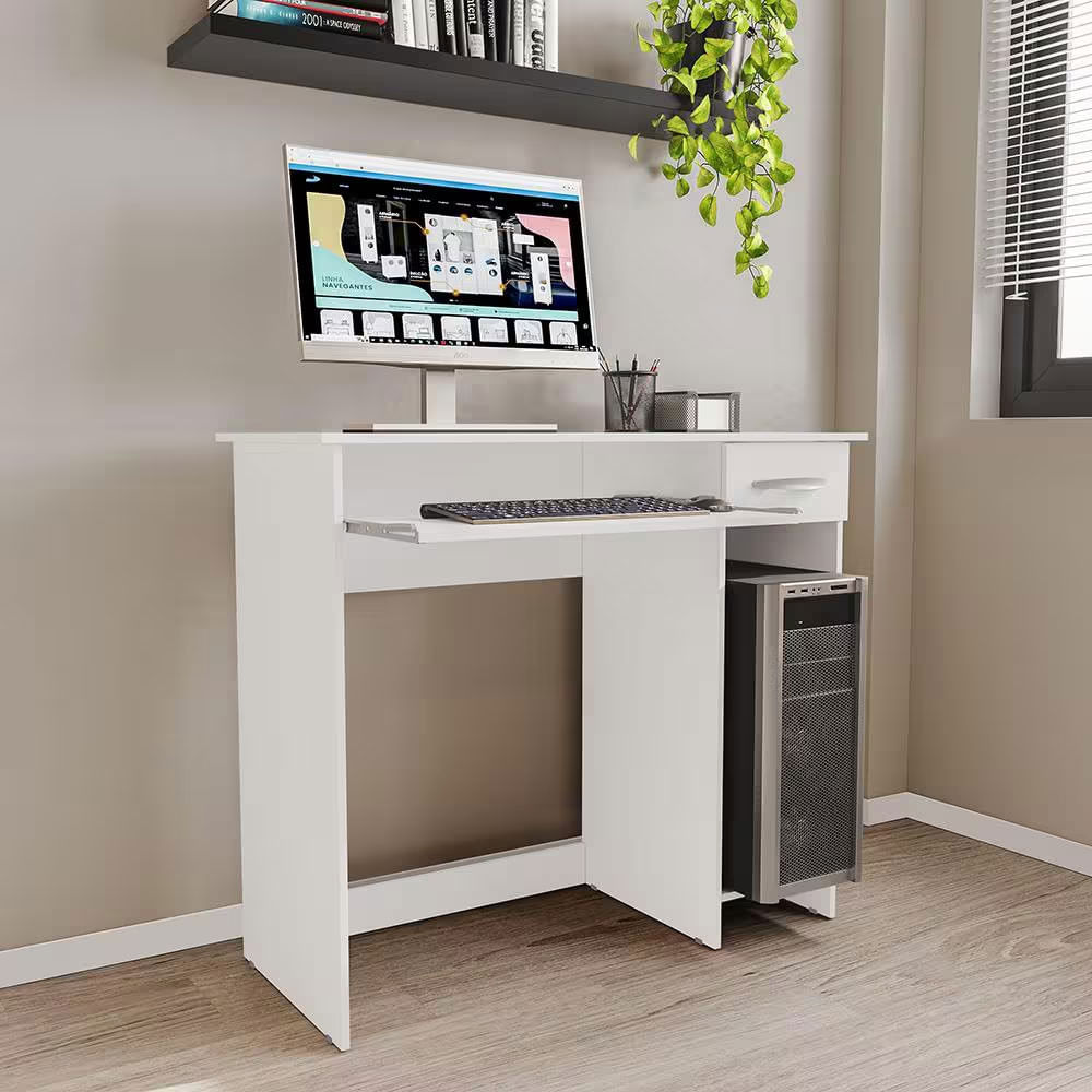 Escrivaninha Siena 2 Gavetas MDP Pintura UV Base Teclado Compacta Politorno Branco