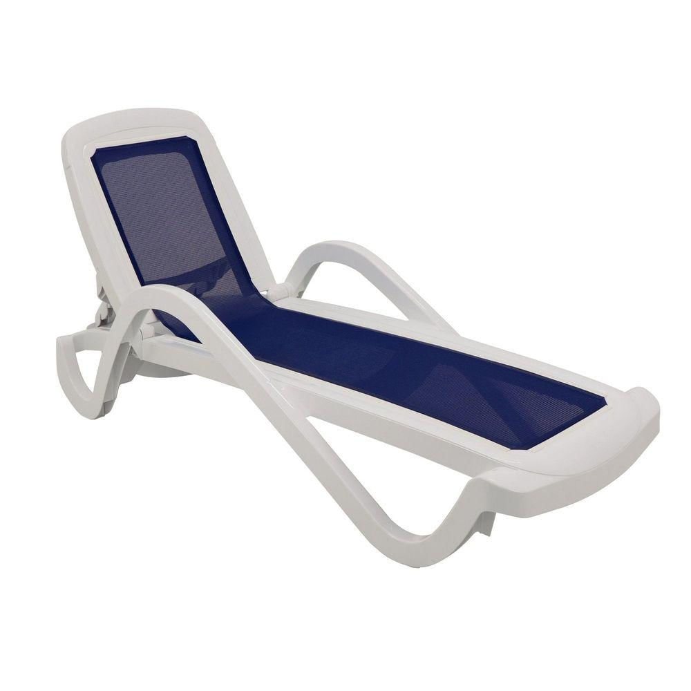 Espreguiçadeira Cancún Tela Azul Escura em Polipropileno Fixa com Rodas Reclinável Branco