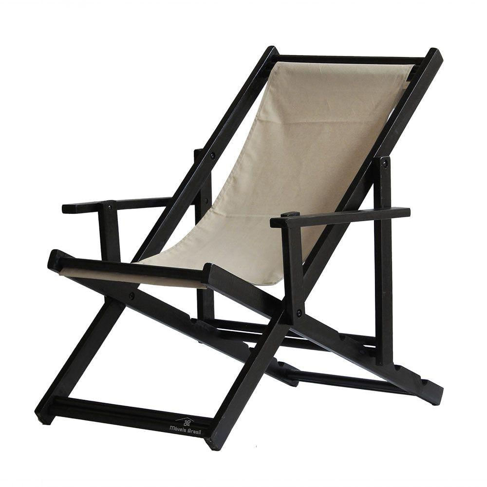 ESPREGUIÇADEIRA EM MADEIRA ENVERNIZADA BLACK COM BRAÇO Sabe aquele final de tarde que você tanto espera para tirar um descanso merecido? Ou aquela viagem para a praia programada a meses com a família? Pois é, nossas cadeiras espreguiçadeira serve exatamente para esses momentos, com várias opções de cores, os tecidos além de charmosos são hidro-repelentes e se adequam a qualquer ambiente, facilmente removíveis para higienização.Estrutura 100% de madeira maciça e verniz especial, que garante sua qualidade e durabilidade, a espreguiçadeira é totalmente dobrável e reclinável (4 posições de ângulo), com descanso para braço, sendo possível montar invertida sem o encosto de braço, perfeita para seu lazer em todos os ambientes, seja ele externo ou interno, esse é o item que definitivamente não pode faltar na vida de quem de fato, quer aproveitar bons momentos! FICHA TÉCNICA DO PRODUTO:04 Níveis de Regulagem de Altura;Tecido Reforçado;Fabricada em Madeira Maciça Pinus;Peso aproximado: 7,5 Kg;Suporta aproximadamente 120 kg;Cor da Madeira: Preta; Dimensões aproximadas do Produto:Altura 1: 69 cm;Altura 2: 82 cm;Altura 3: 91 cm;Altura 4: 100 cm;Profundidade: 105 cm. Dimensão aproximada total:Comprimento: 135 cm;Largura: 66 cm; Informações Adicionais:Garantia: 90 dias contra defeitos de fabricação.Acompanha 1 cadeira Obs. A cor pode variar da foto conforme a tonalidade da madeira e iluminação.. !!