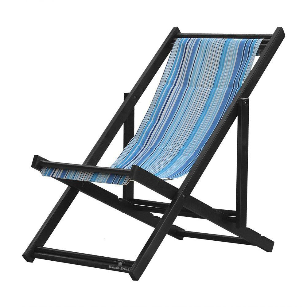 Espreguiçadeira Preguiçosa Dobrável Black Sb-listras Azuis