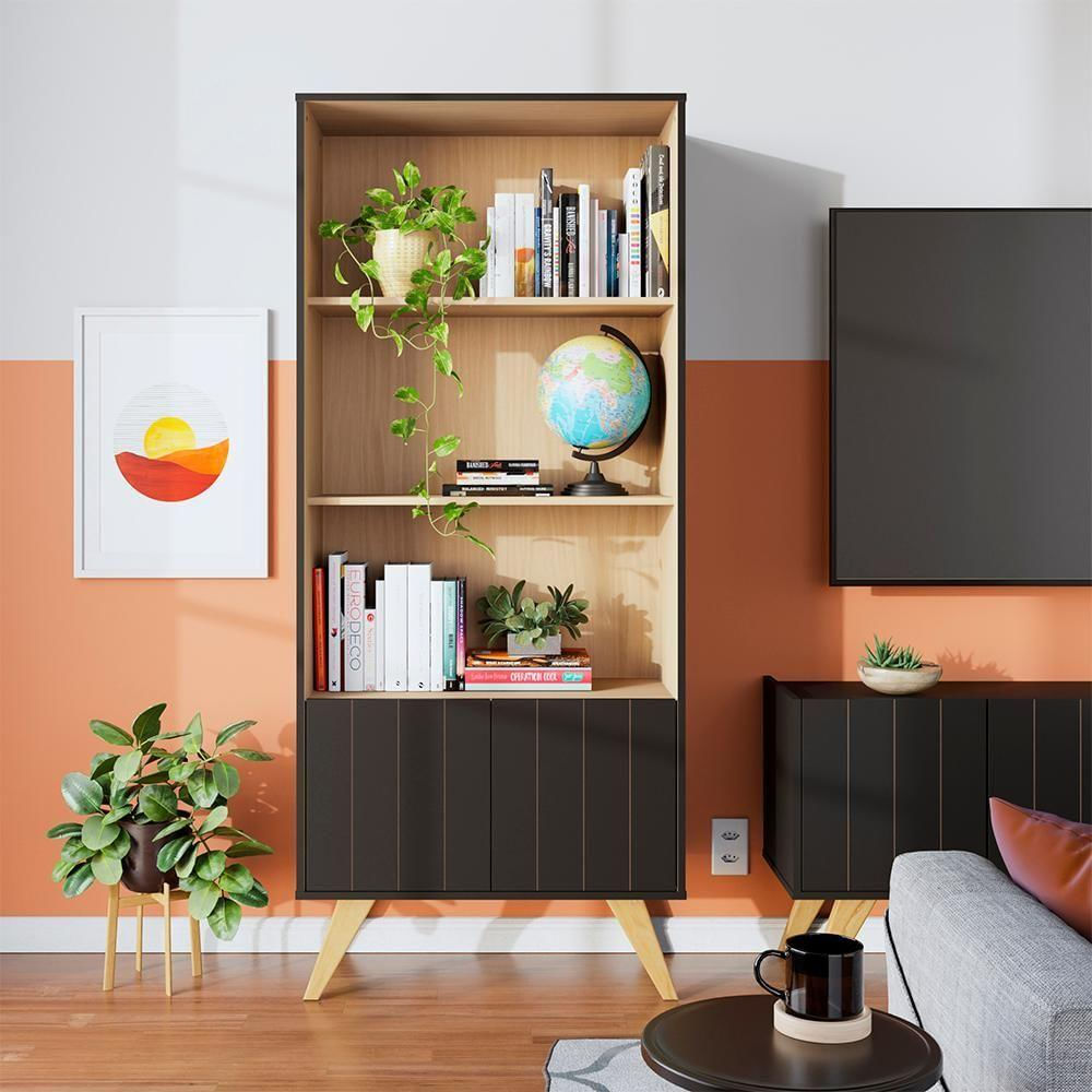 Para os amantes de livros e decoração, a estante Link é uma ótima opção para valorizar ainda mais o seu ambiente. Alinhando a praticidade ao design, este produto possui três prateleiras e duas portas com acabamento frisado que foram pensadas especialmente para trazer harmonia e elegância aos espaços da sua casa. Os pés retro em madeira proporcionam maior estabilidade e charme.