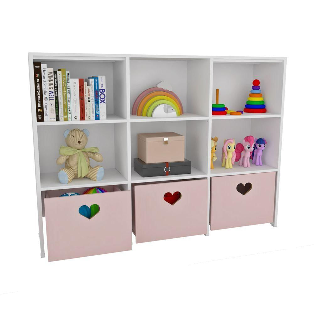 Estante De Nichos Com Baús Organizadores Coração Stella 100% Mdf