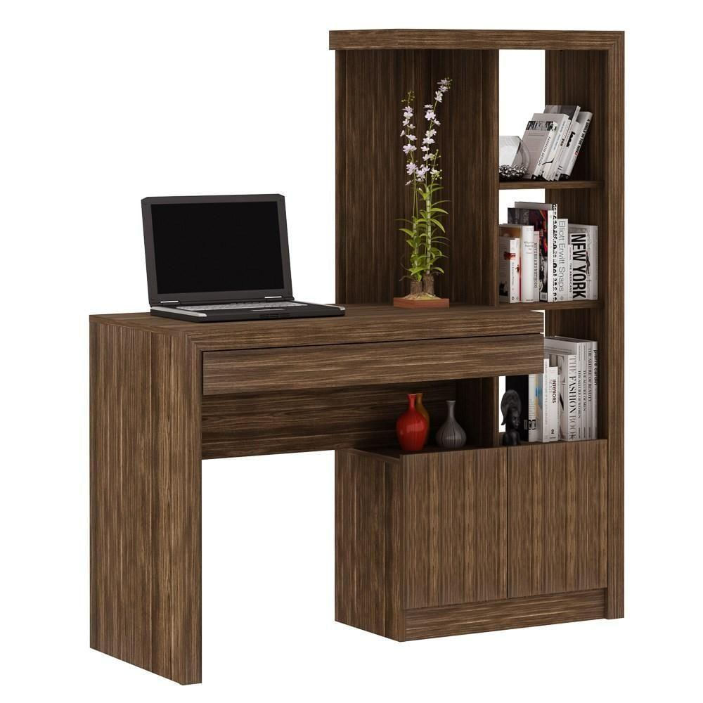 Estante Escrivaninha 1 Porta 2 Gavetas Me4143 Nogal - Tecno Mobili