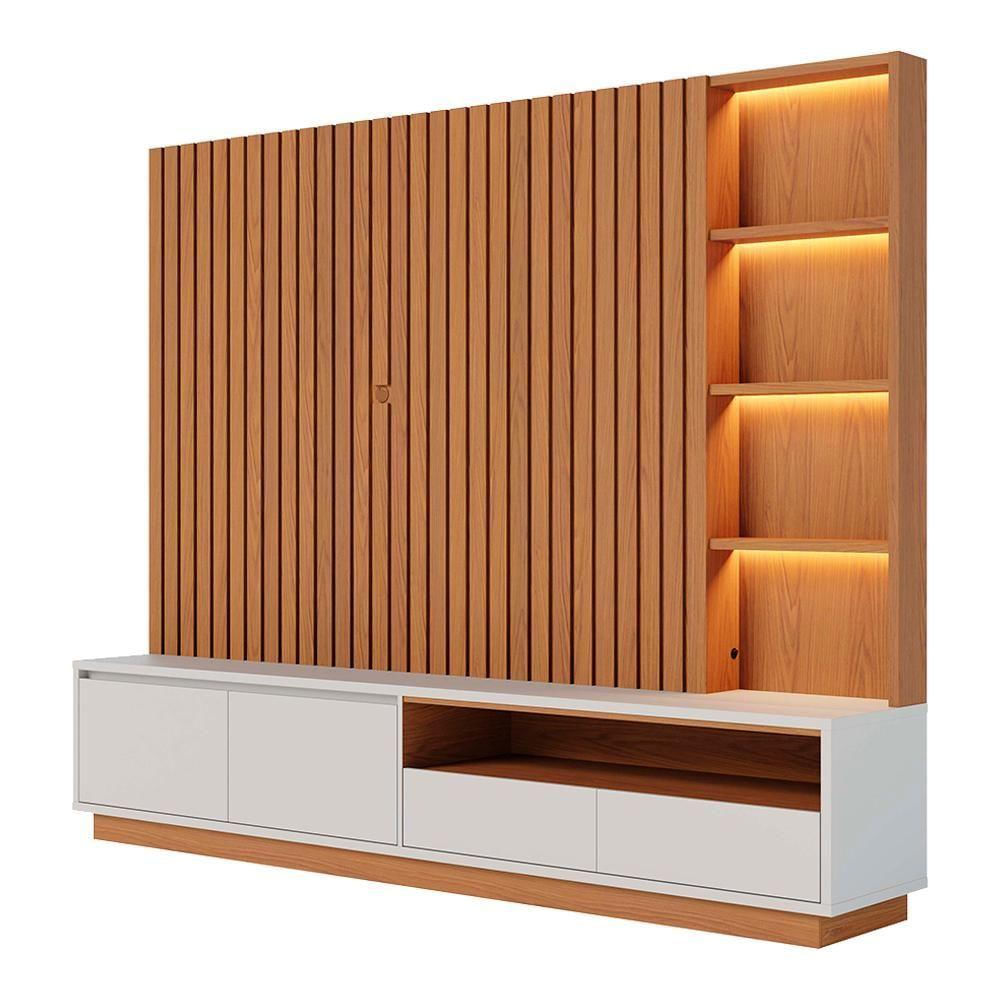 Estante Home Ripado TV 82 Polegadas 240 Cm Cancun Colibri Freijo Off White Matte