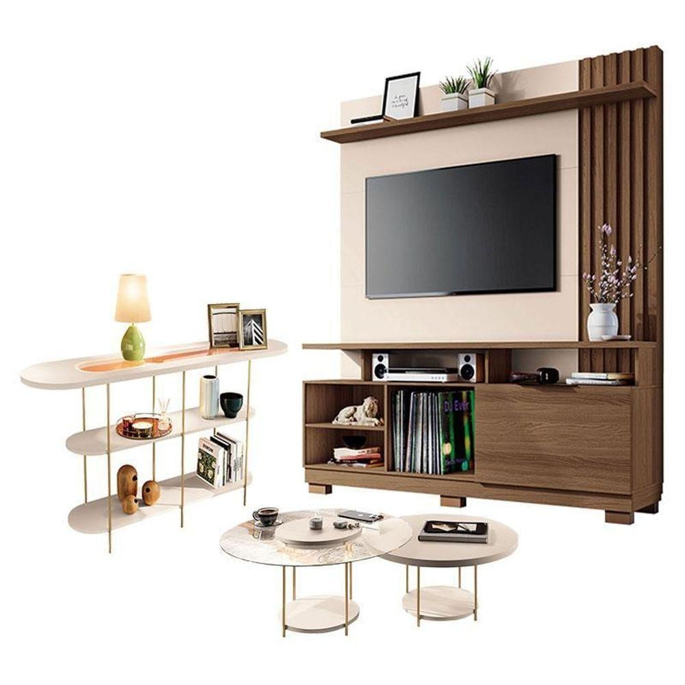 Estante Home Theater Artheo Castanho Off White Com Kit Mesa De Centro Sky E Aparador Infinity Off White - Hb Móveis