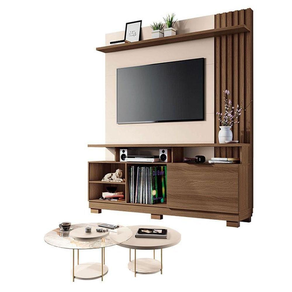 Estante Home Theater Artheo Castanho Off White Com Kit Mesa De Centro Sky Off White - Hb Móveis
