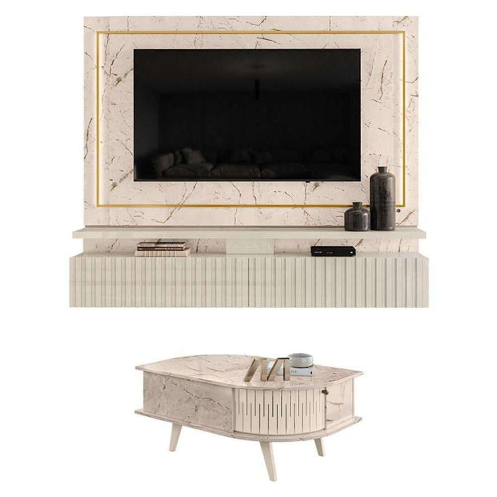 Estante Home Theater Suspenso Gaia Com Mesa De Centro Indianápolis Calacata Off White - Madetec