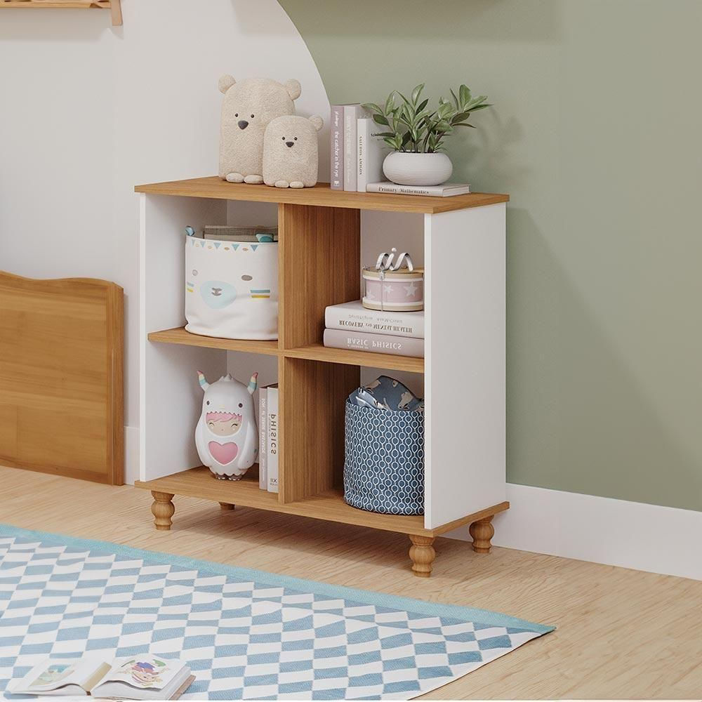 Estante Infantil 4 Nichos Pés Madeira Maciça Branco Nature Casinha Permóbili