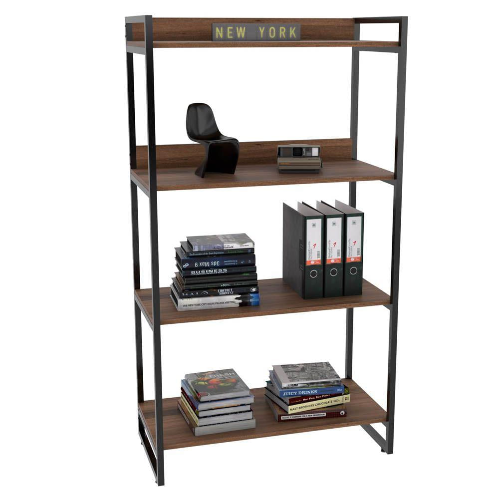 Estante Multiuso 4 Prateleiras Escritório Estilo Industrial Form C01 146x80 cm Nogal - Lyam Decor