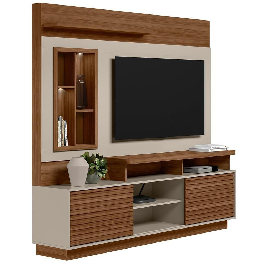 Estante Painel Para Tv 60 Pol Com Led 200cm Bacchi L05 Jatobá Off White - Lyam Decor