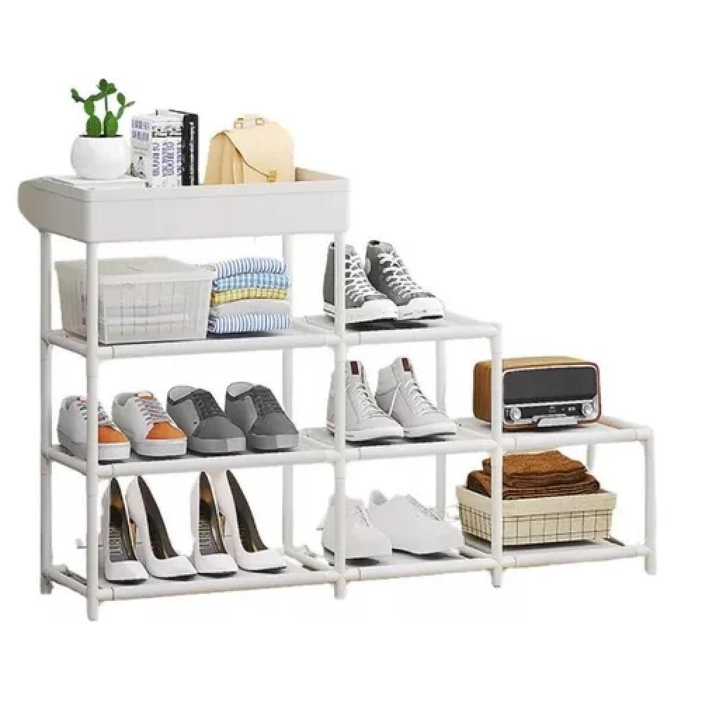 Estante Escada Multiuso Sapateira com 8 Prateleiras Organize seu espaço com praticidade e estilo! A Estante Escada Multiuso é ideal para manter sapatos, acessórios e objetos sempre à mão, sem abrir mão da elegância. Com design funcional, conta com 8 prateleiras distribuídas em 3 andares, aproveitando o espaço de forma inteligente. Sua estrutura em metal resistente com conectores de plástico e prateleiras em TNT garante leveza, durabilidade e fácil montagem. Compacta e versátil, é perfeita para quartos, closets, lavanderias ou áreas de serviço, ajudando a manter tudo em ordem e bem organizado. Especificações: Material: Metal, Plástico e TNT Medidas: 61 cm (A) x 21,5 cm (P) x 93 cm (L) Prateleiras: 8 Andares: 4 Cesto: 1 Uso: Multiuso (sapatos, acessórios e objetos diversos)