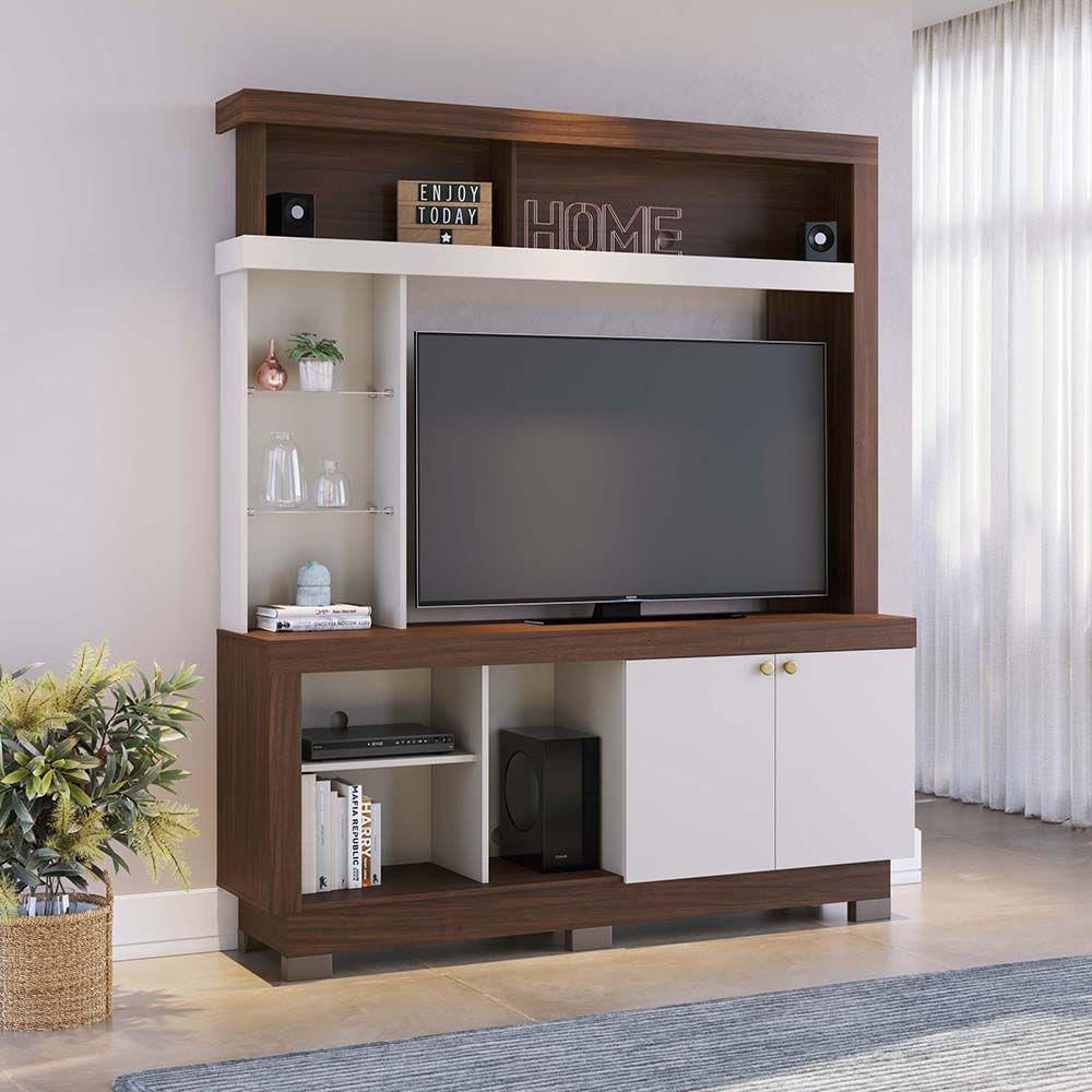 Estante Valença 160cm 2 Portas De Giro - Ssx Multicoisas Cor Nogueira Real/off White