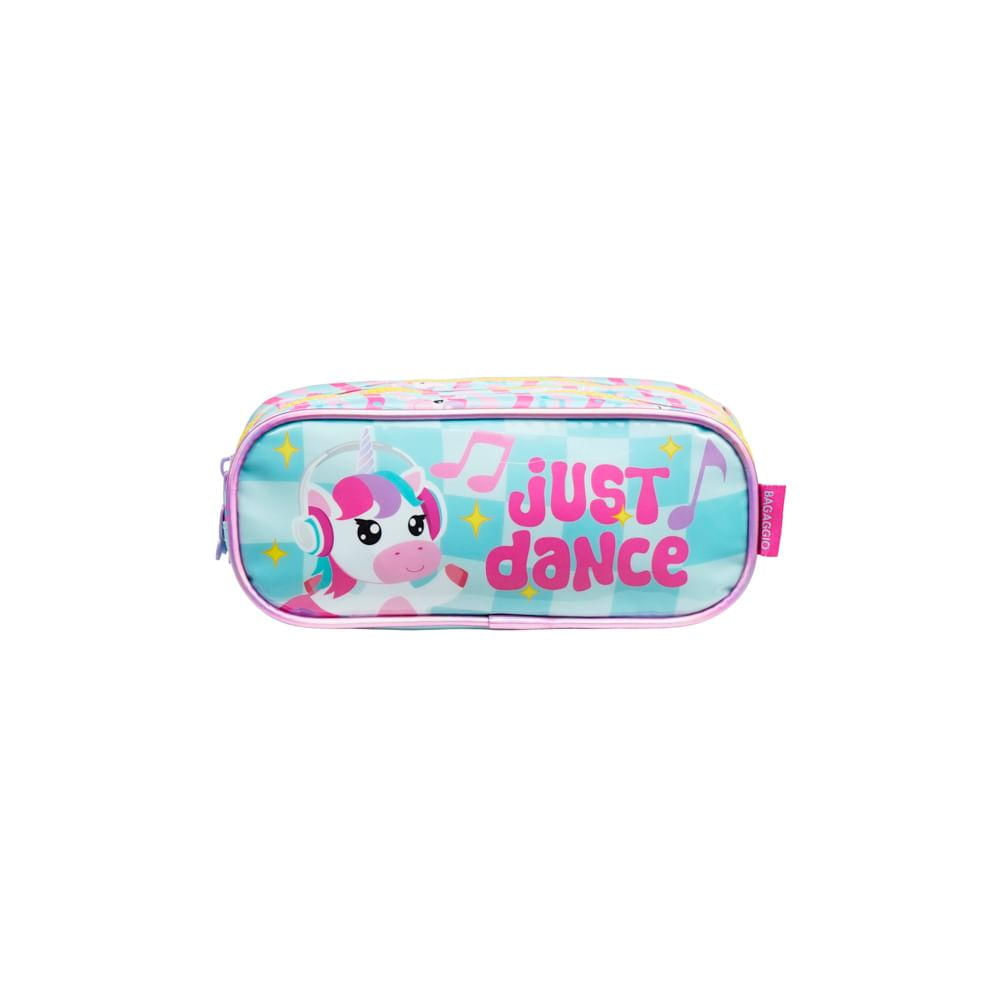 Estojo Escolar Feminino com 3 Compartimentos Unicórnio Just Dance Verde Água U / Verde claro