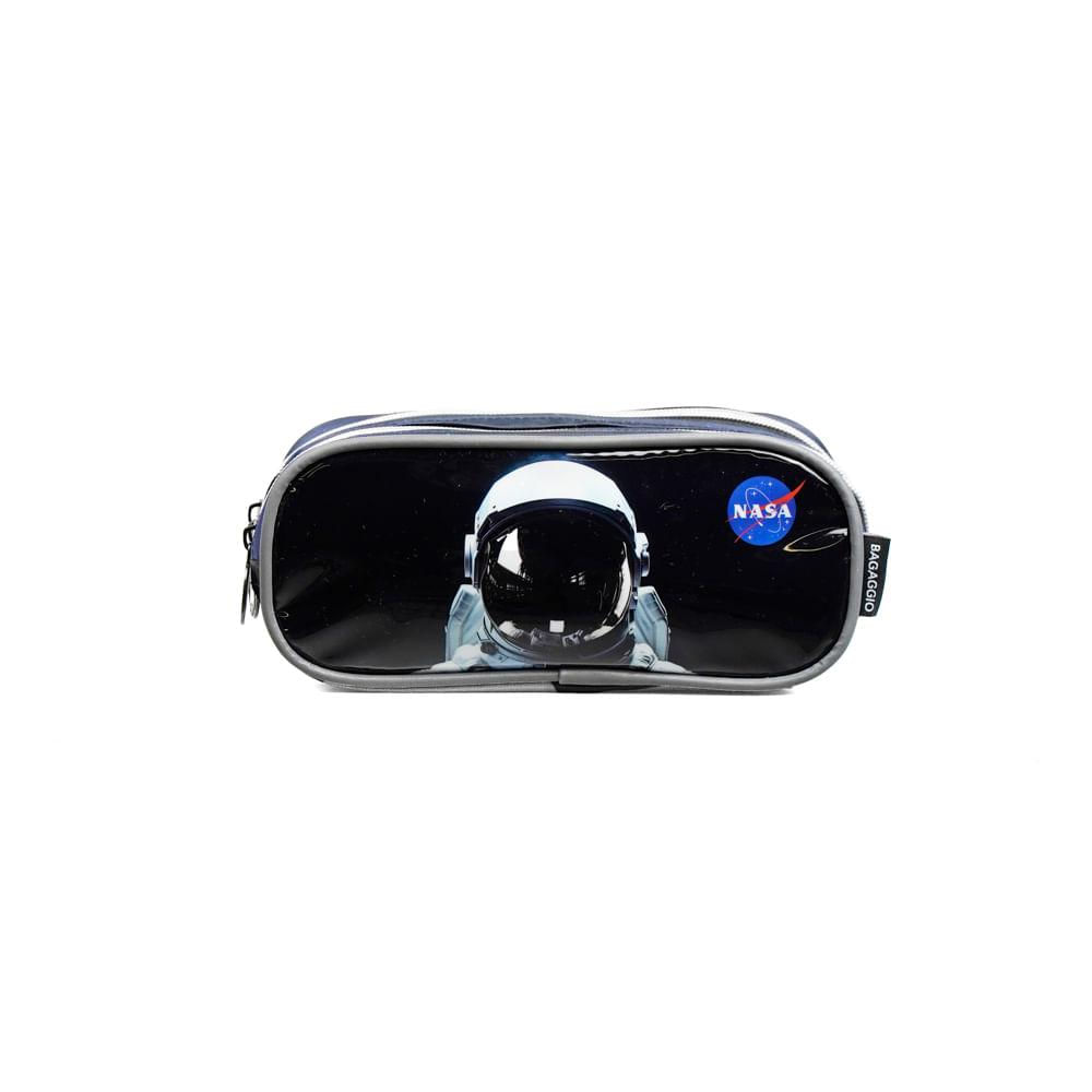 painel frontal em material resistente com estampa brilhante do astronauta, criando um visual futurista que complementa o kit Nasa.