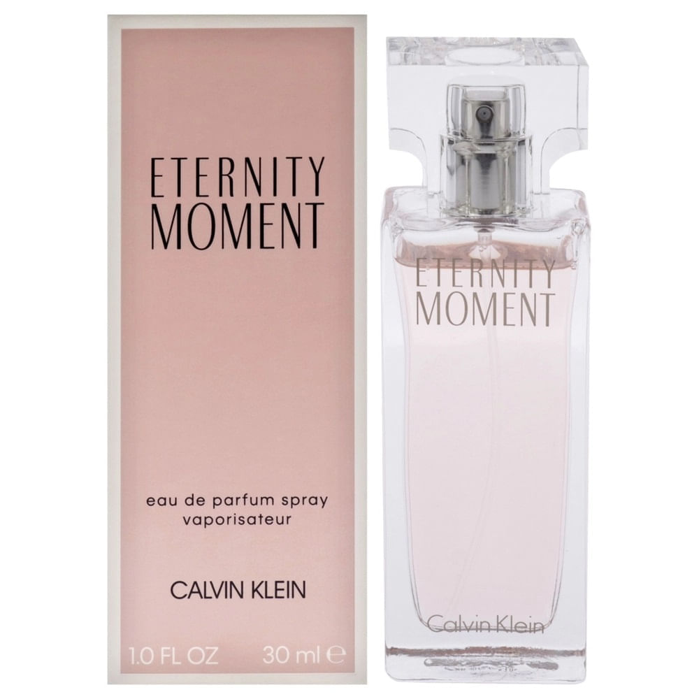 Eternity Moment tem um aroma floral refinado e refrescante, com notas de lichia, framboesa, goiaba, flor de maracujá, ninfêa, flor de romã, peônia rosa, almíscar e madeira rosa. A mulher de Eternity Calvin Klein é super feminina, requintada, espontânea, alegre, auto confiante, divertida, e sabe que todos os momentos comuns podem se tornar algo mágico e eterno. A sua fixação é superior, mantendo a refrescância e o aroma agradável por muitas e muitas horas. É o tipo de aroma que fica eternizado e marcado no olfato de quem o sente.