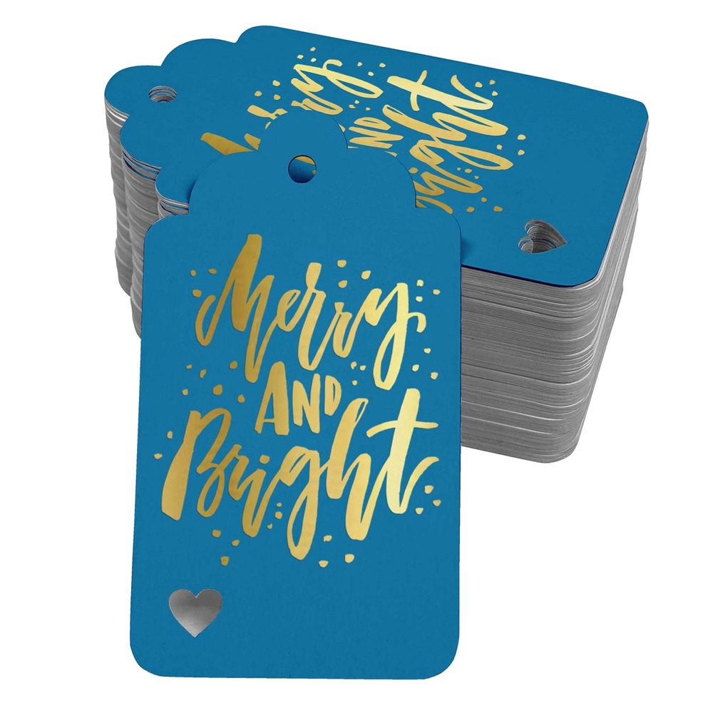 Etiquetas de Papel Feliz e Brilhante para Lembrancinhas de Natal, Metalizadas para Artesanato e Pendurar - Inkdotpot 50 Etiquetas Metalizadas / Azul - Dourado