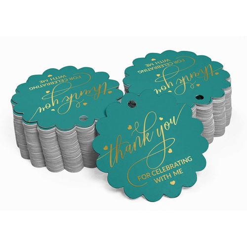 Etiquetas de Papel Metalizado 'Obrigado por Celebrar Comigo' para Lembrancinhas de Aniversário - Inkdotpot 50 Etiquetas Metalizadas / Verde - Prata