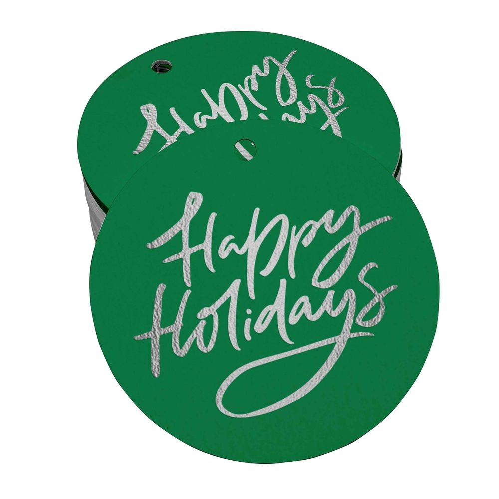 Etiquetas de Papel Metalizado Boas Festas para Lembrancinhas para Pendurar - Inkdotpot 100 Etiquetas Metalizadas / Verde - Prata