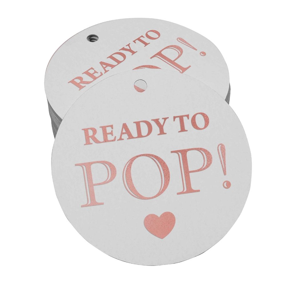 Etiquetas de Papel Metalizado para Pendurar 'Prontas para Estourar' em Lembrancinhas de Chá de Bebê - Inkdotpot 100 Etiquetas Metalizadas / Branco - Ouro Rosé