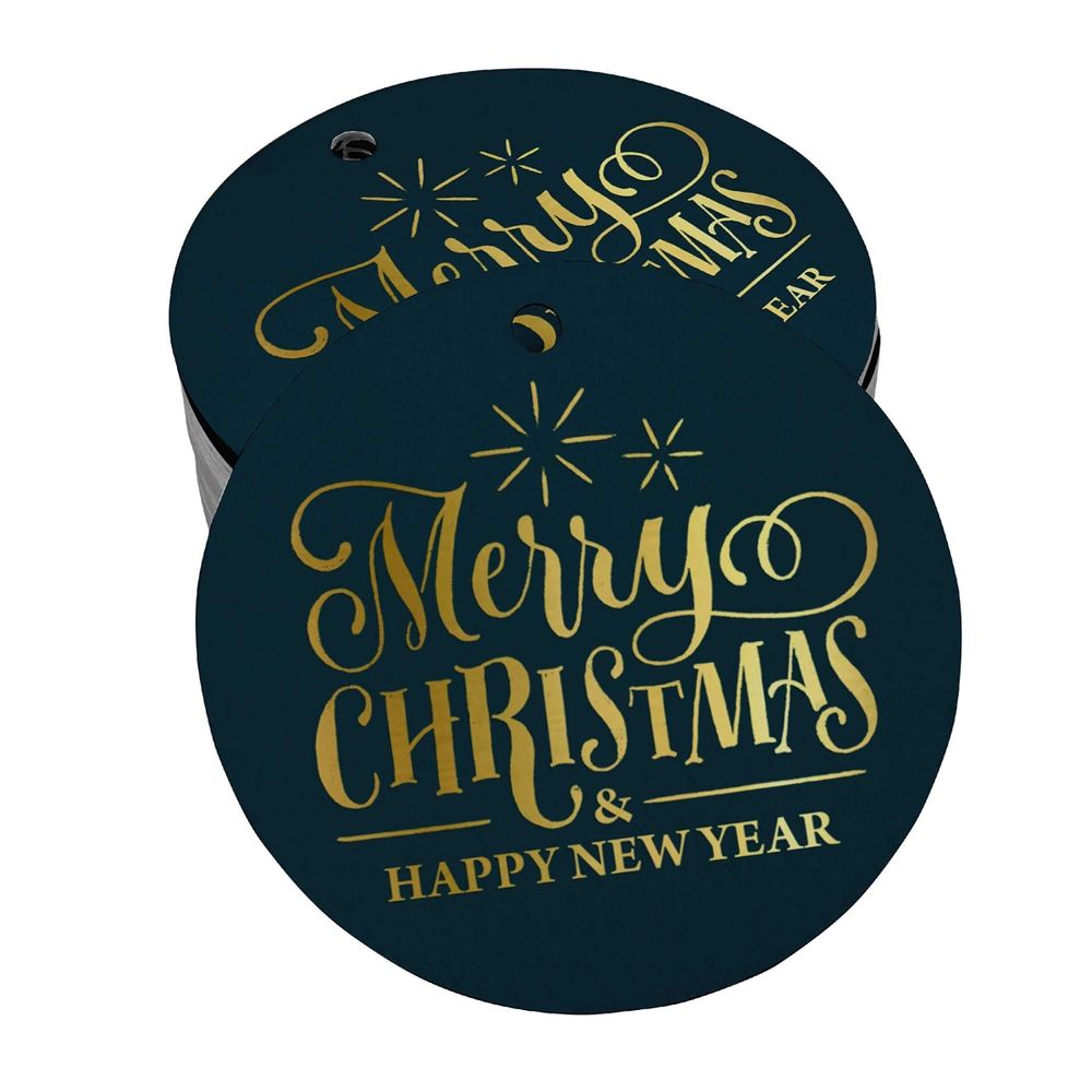Etiquetas de Papel Metalizado Pendentes para Lembrancinhas com Texto "Merry Christmas & Happy New Year" - Inkdotpot 100 Etiquetas Metalizadas / Azul - Dourado