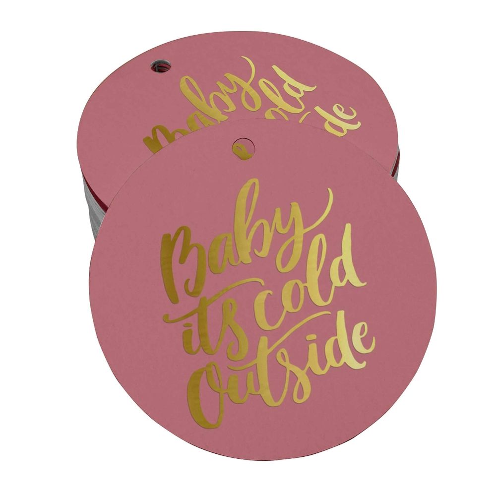 Etiquetas para Garrafa 'Baby It's Cold Outside' Chá de Bebê, Metalizadas para Lembrancinha, para Pendurar - Inkdotpot 50 Etiquetas Metalizadas / Rosa - Dourado