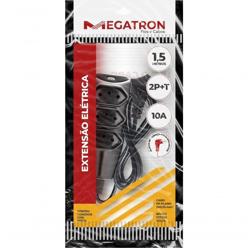 Extensão P/ Plugues 2p T Pp Plano 90º 3x0,75 1,5m Preta