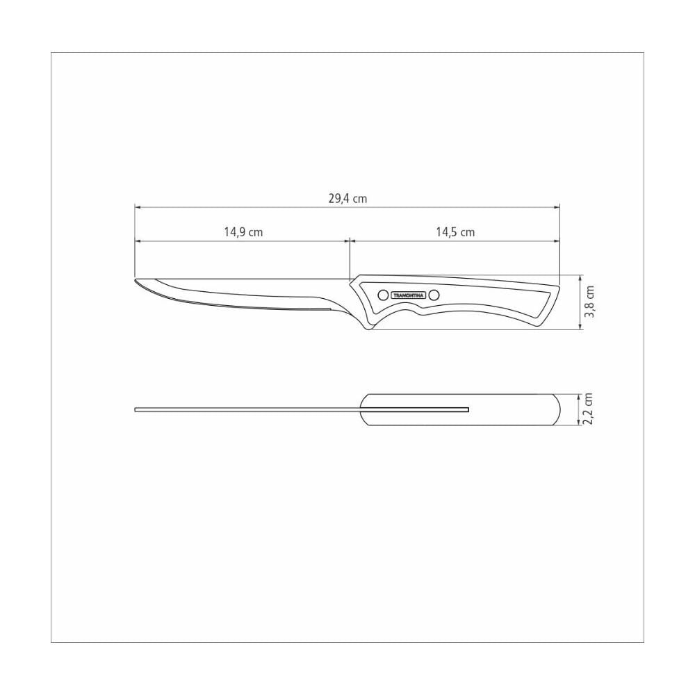 Ideal para separar a carne dos ossos e tirar a gordura. Lâmina de aço inox escurecido. Resistente e robusta. Cabo de madeira com design anatômico que torna o uso muito mais confortável. Rebites aço inox escurecido.