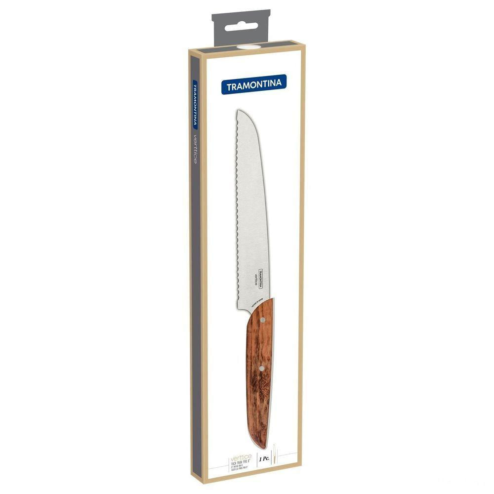 Faca Para Pão Tramontina Verttice Com Lâmina Em Aço Inox E Cabo De Madeira Natural 8" Tramontina