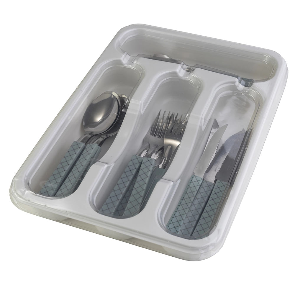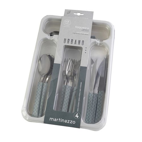 Faqueiro Martinazzo Urbano 17 peças Com Porta Talher CINZA - Faqueiro Martinazzo Urbano em Metal com Cabo Plástico Cinza 16 Peças e Porta-Talher