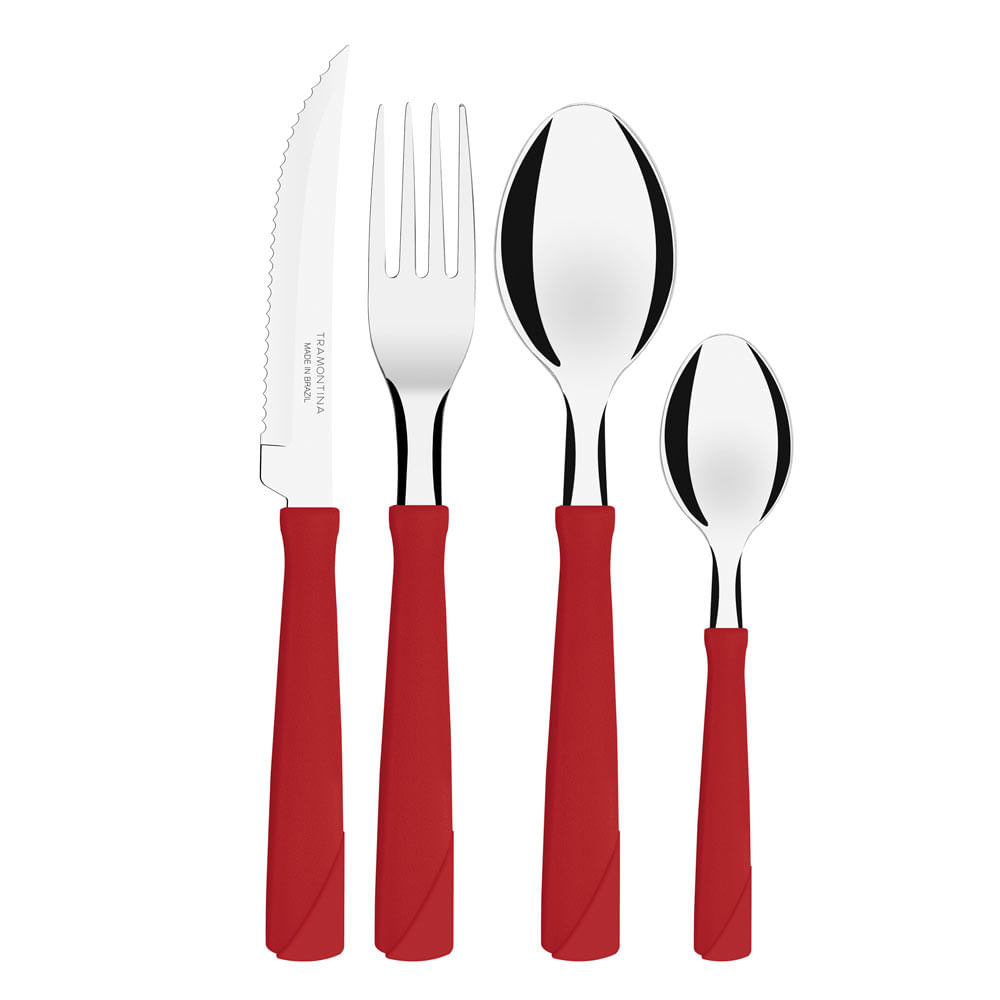 Faqueiro Tramontina New Kolor com Lâminas em Aço Inox e Cabos de Polipropileno Vermelho 24 Peças