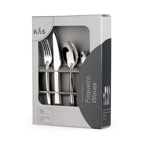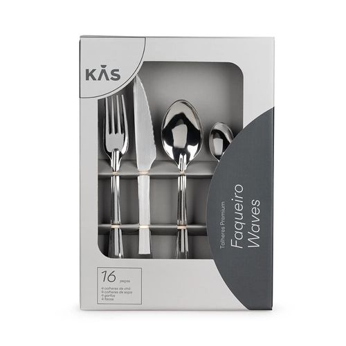 Tenha todo charme e elegância que a sua mesa posta de almoço ou jantar merece com o Faqueiro Inox Kas com 16 Peças Waves, produto exclusivo Le Biscuit. Possui design diferenciado que decora sua mesa e serve até 4 pessoas com todo requinte e praticidade. É composto por 4 garfos, 4 facas, 4 colheres de sopa e 4 colheres de sobremesa, em aço de alta durabilidade.