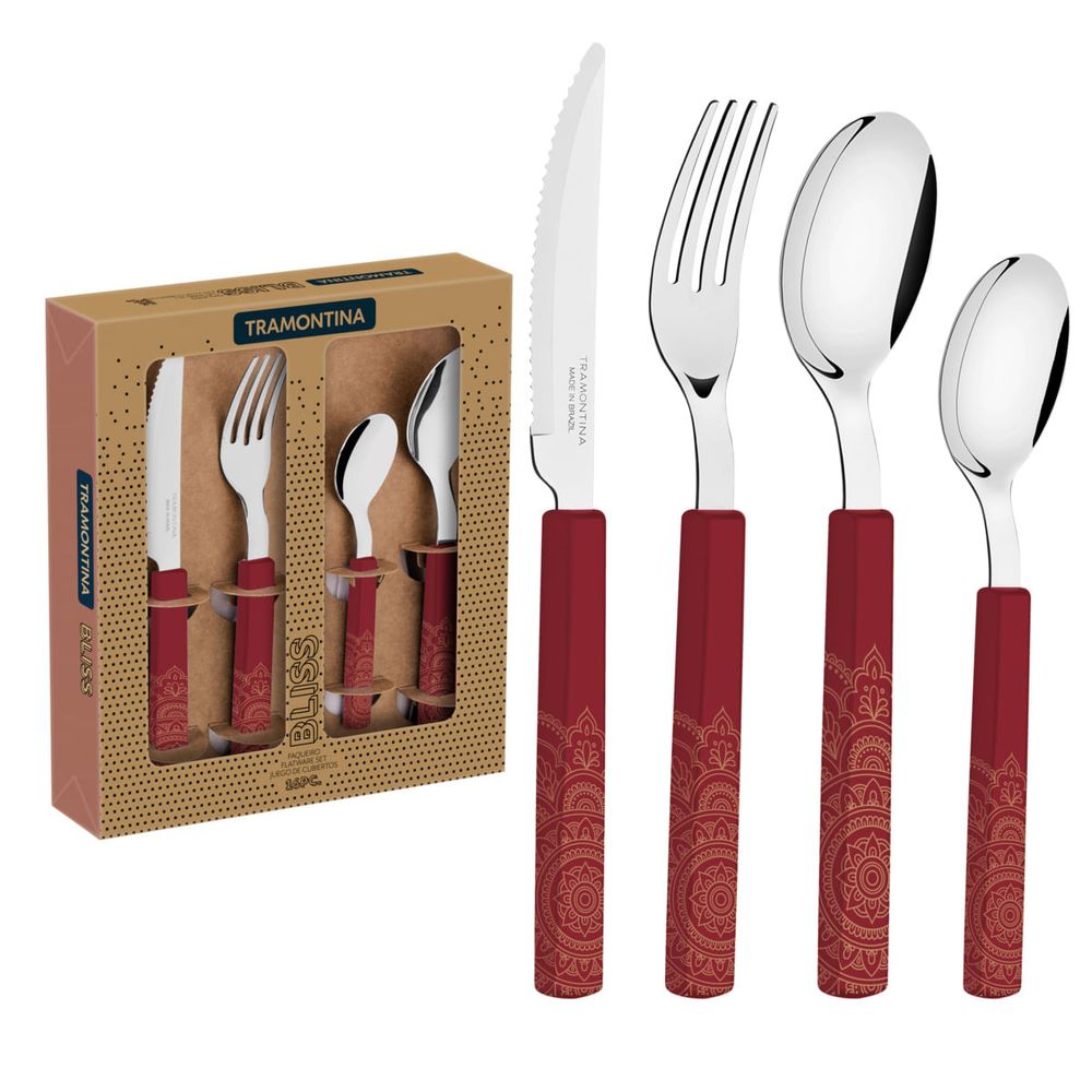 Faqueiro Tramontina Bliss com Lâminas em Aço Inox e Cabos de Polipropileno Carmim 16 Peças