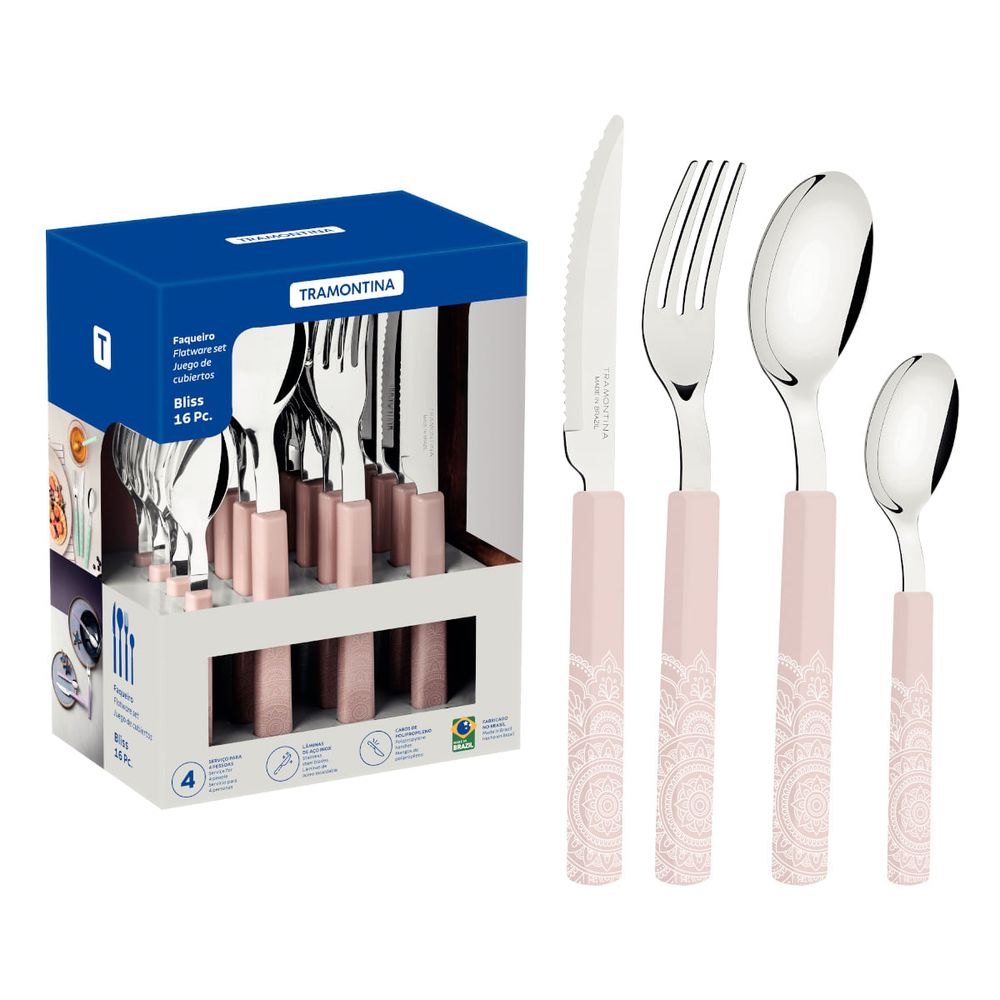 Faqueiro Tramontina Bliss com Lâminas em Aço Inox e Cabos de Polipropileno Linho 16 Peças