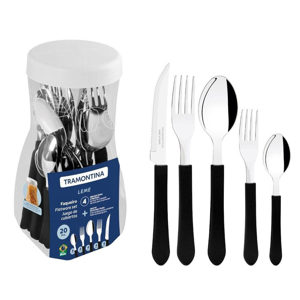 Faqueiro Tramontina Leme Aço Inox E Polipropileno Preto 20 Peças