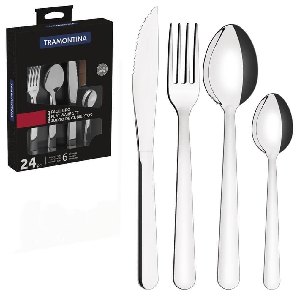 - O Faqueiro Tramontina Malibu 24 peças em aço inox é a escolha ideal para quem busca resistência, beleza e funcionalidade.