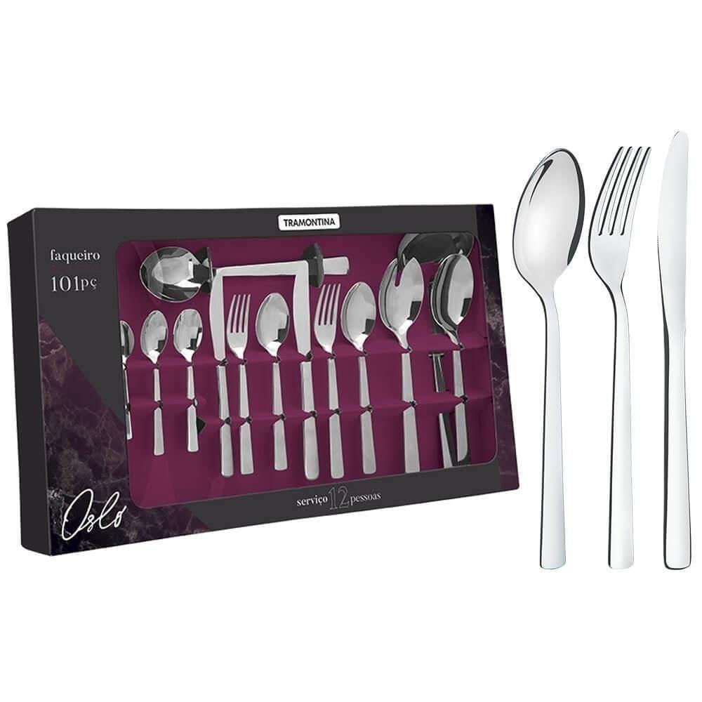 - O Faqueiro Tramontina Oslo em Aço Inox com 101 peças é a escolha perfeita para quem valoriza beleza, qualidade e durabilidade.