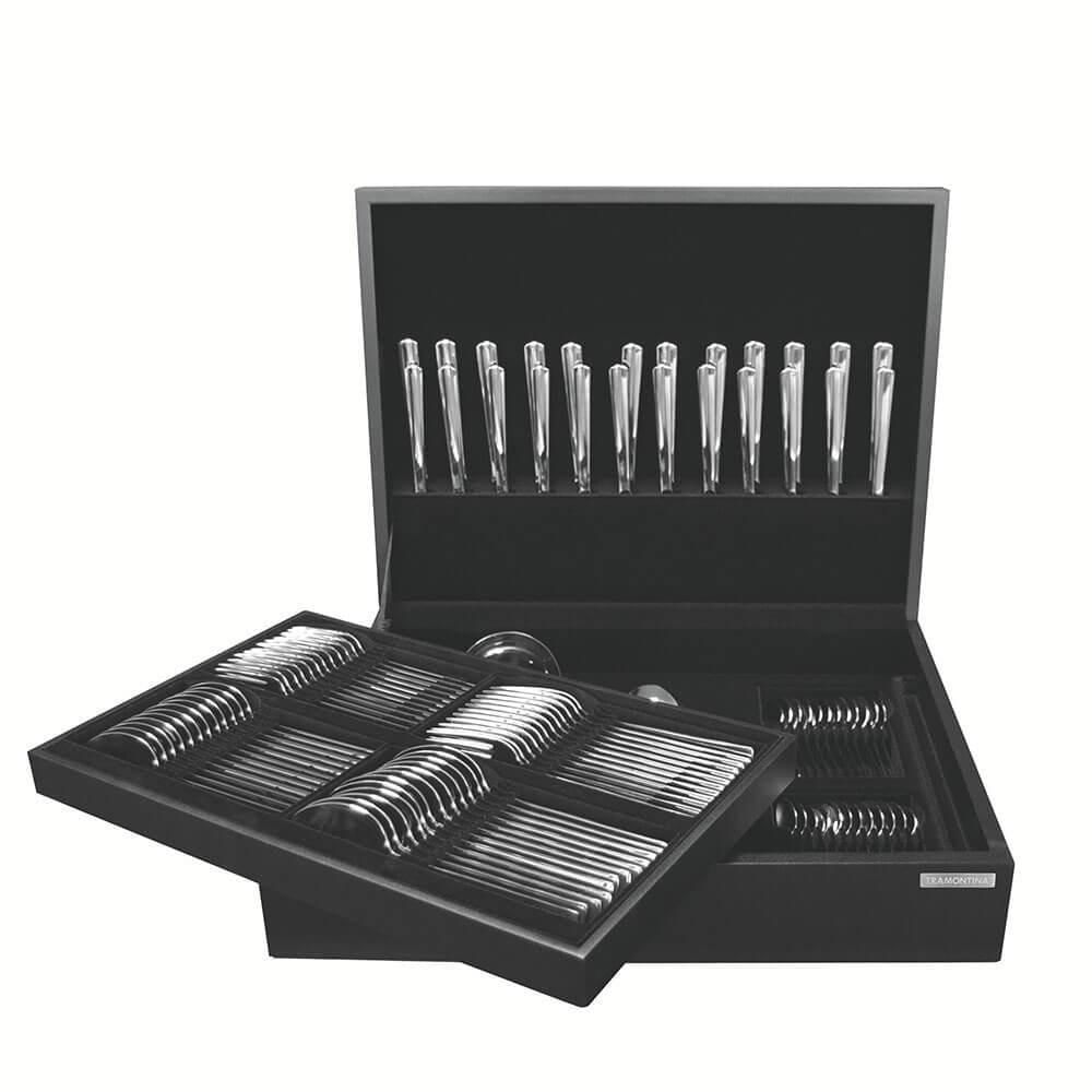 Faqueiro Tramontina Pacific Em Aço Inox Acabamento Alto Brilho Com Detalhes No Cabo E Estojo 101 Pçs