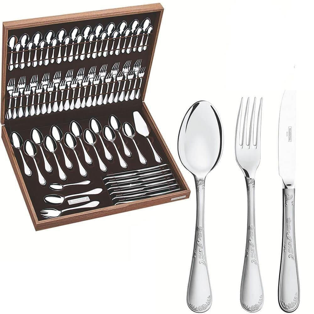 Faqueiro Tramontina Renascença Em Aço Inox Com Facas Detalhes Em Alto Relevo No Cabo 76pç 66929300
