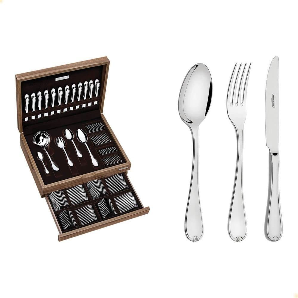 Faqueiro Tramontina Vicenza Em Aço Inox Com Detalhes No Cabo E Estojo De Madeira 101 Peças 66924215