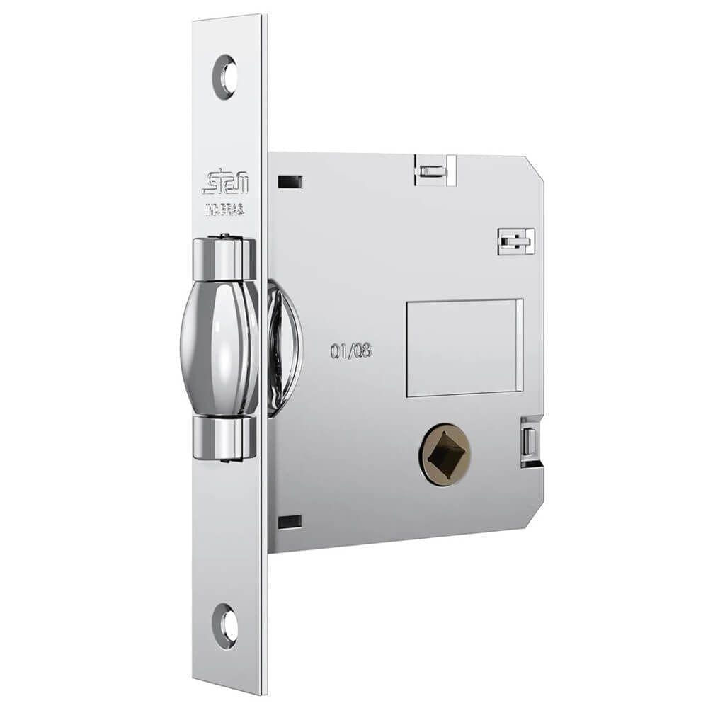 Fechadura Nice 1025 Com Trinco Rolete E Roseta Quadrada Cromado Para Banheiro - 14262 - Stam