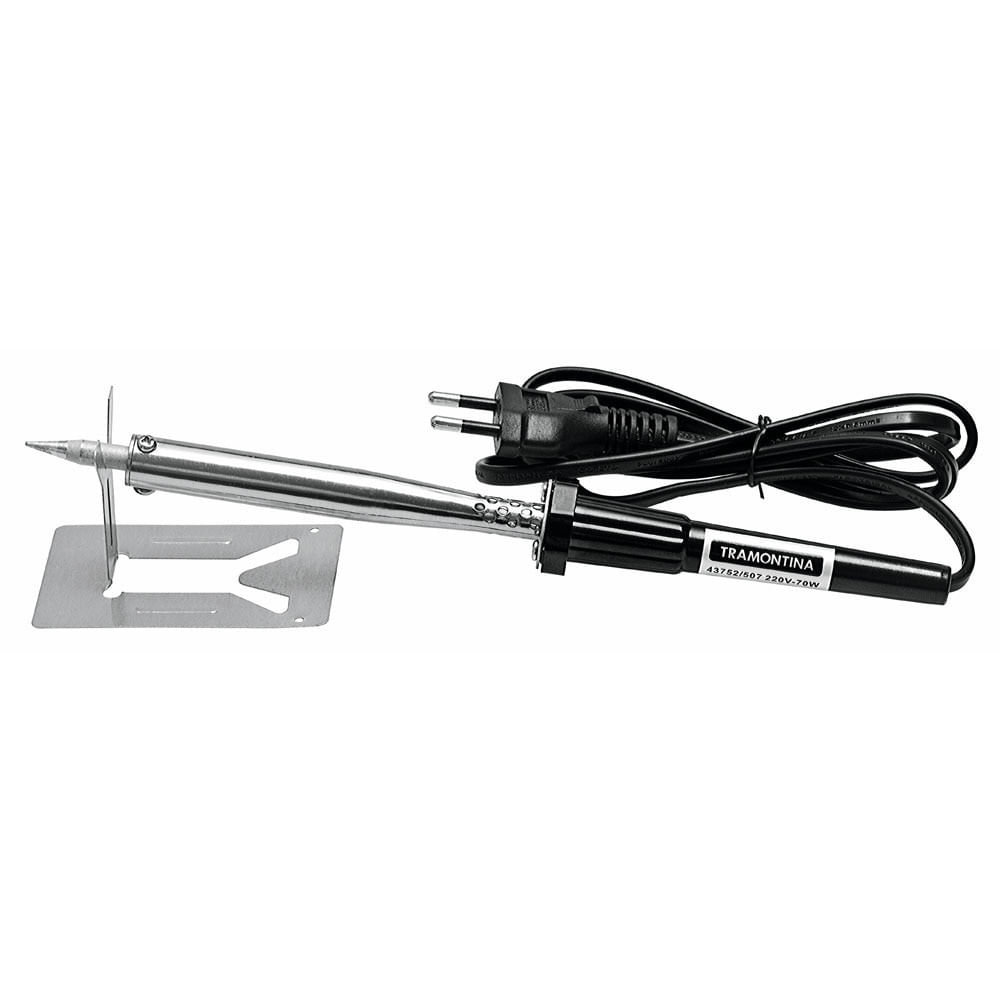 Ferro de Solda 70W c/ Suporte e Cabo de 1m para Reparos Tramontina Cinza e Amarelo / 220V