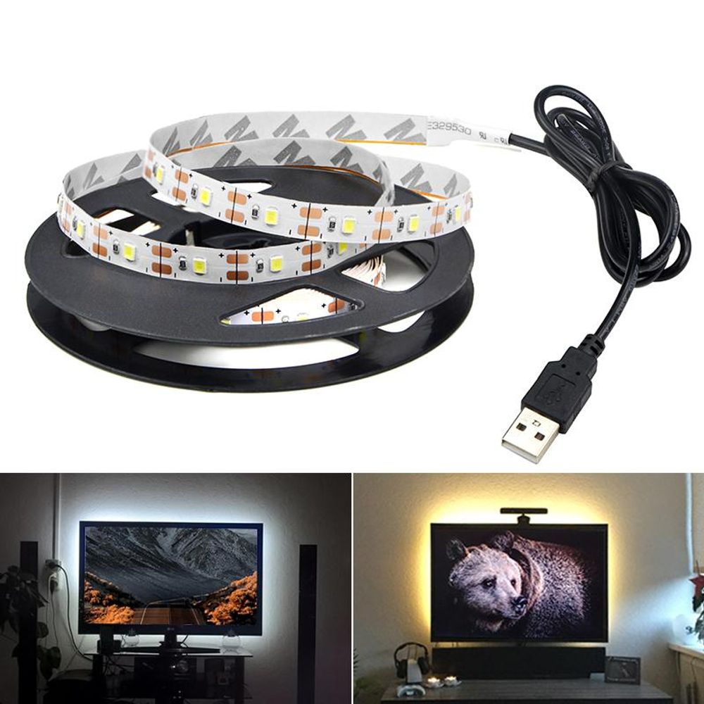 Fita LED para TV com USB DC5V 50CM 1M 2M 3M 4M 5M 0,5m / branco quente